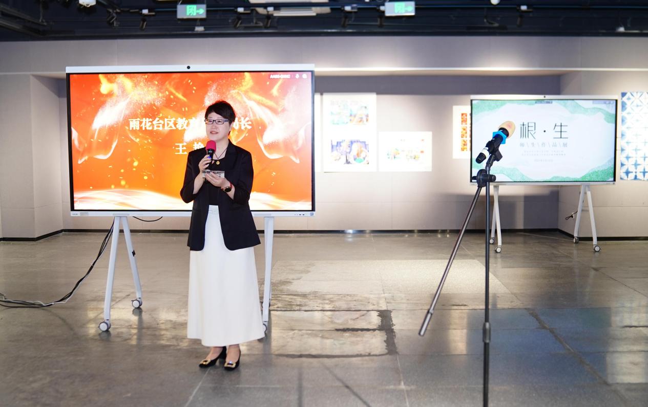 在热烈的掌声中,雨花台区教育局副局长王艳宣布本次作品展开幕。开幕式之后,与会领导、嘉宾与师生一同走进展厅,开启了一场艺术之旅。学校艺术设计系副主任徐妍杰于作品前倾情解说,让参观者深入了解作品的创作背景、艺术特色和创作理念。
