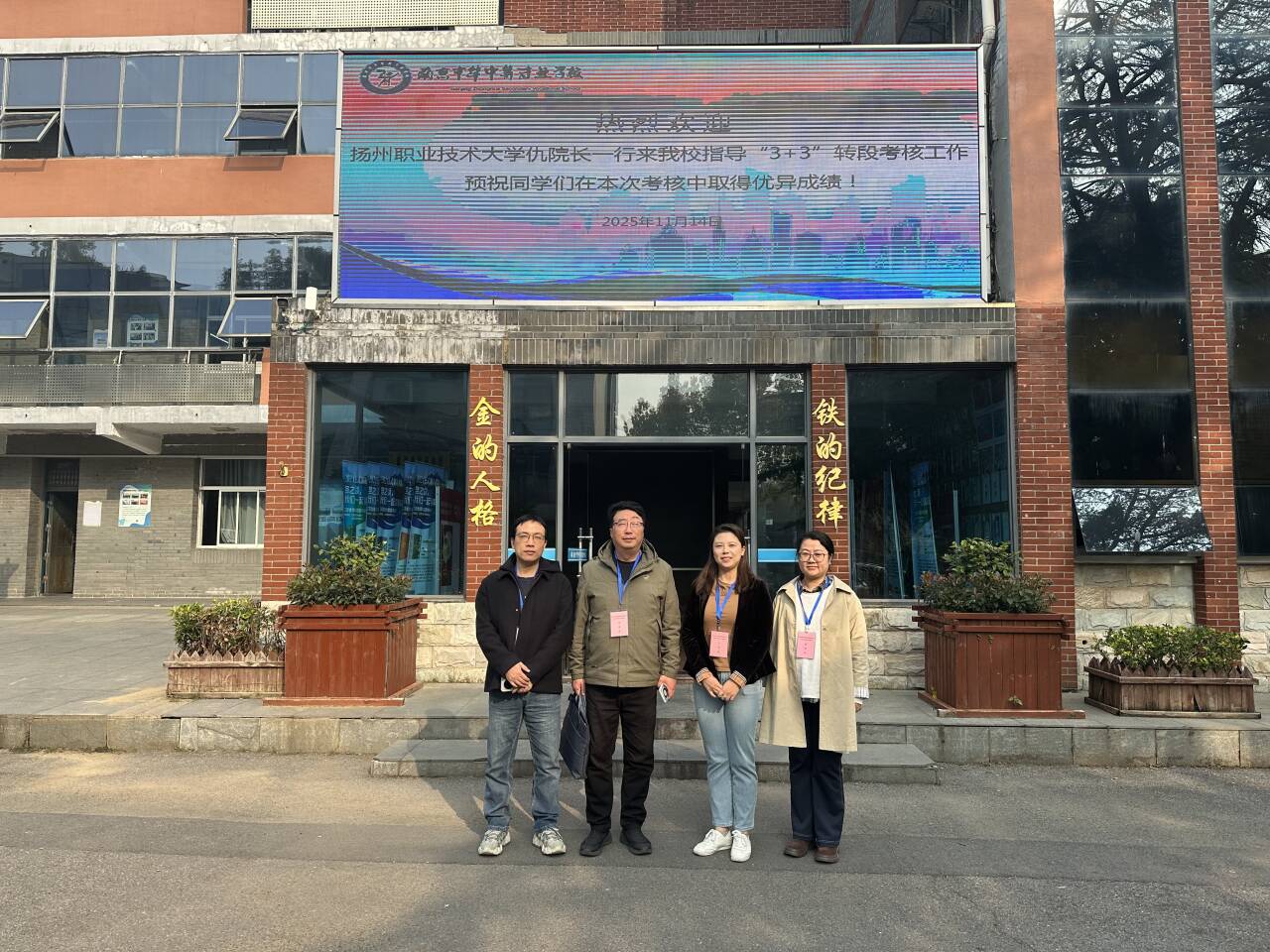 扬州市职业技术大学艺术学院副院长仇国梁携范永琨主任及骨干教师一同来到南京中华中等专业学校,学校张勇书记及艺术设计系主任种颖陪同,顺利完成了本此巡考与监考工作,两校对艺术设计3+3升学相关工作进行了交流。
