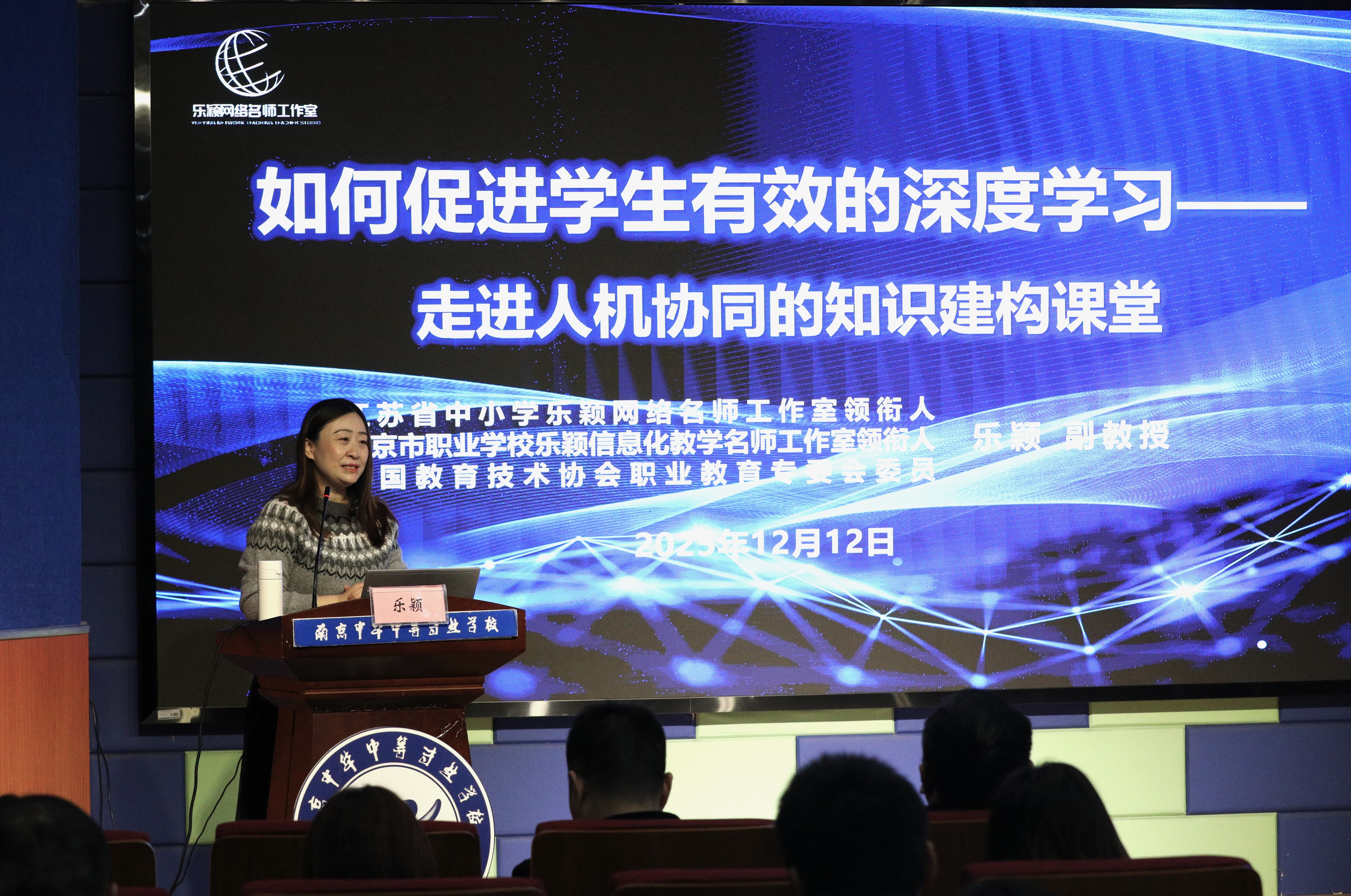微讲座环节紧随其后。江苏省乐颖网络名师工作室领衔人、南京市职教(成人)教研室乐颖副教授,以《如何促进学生有效的深度学习——走进人机协同的知识建构课堂》为题,结合深耕职教教研的理论积淀与实践经验,分享前沿教育理念与实用方法,为在场师生带来深刻启发,赢得阵阵掌声。
