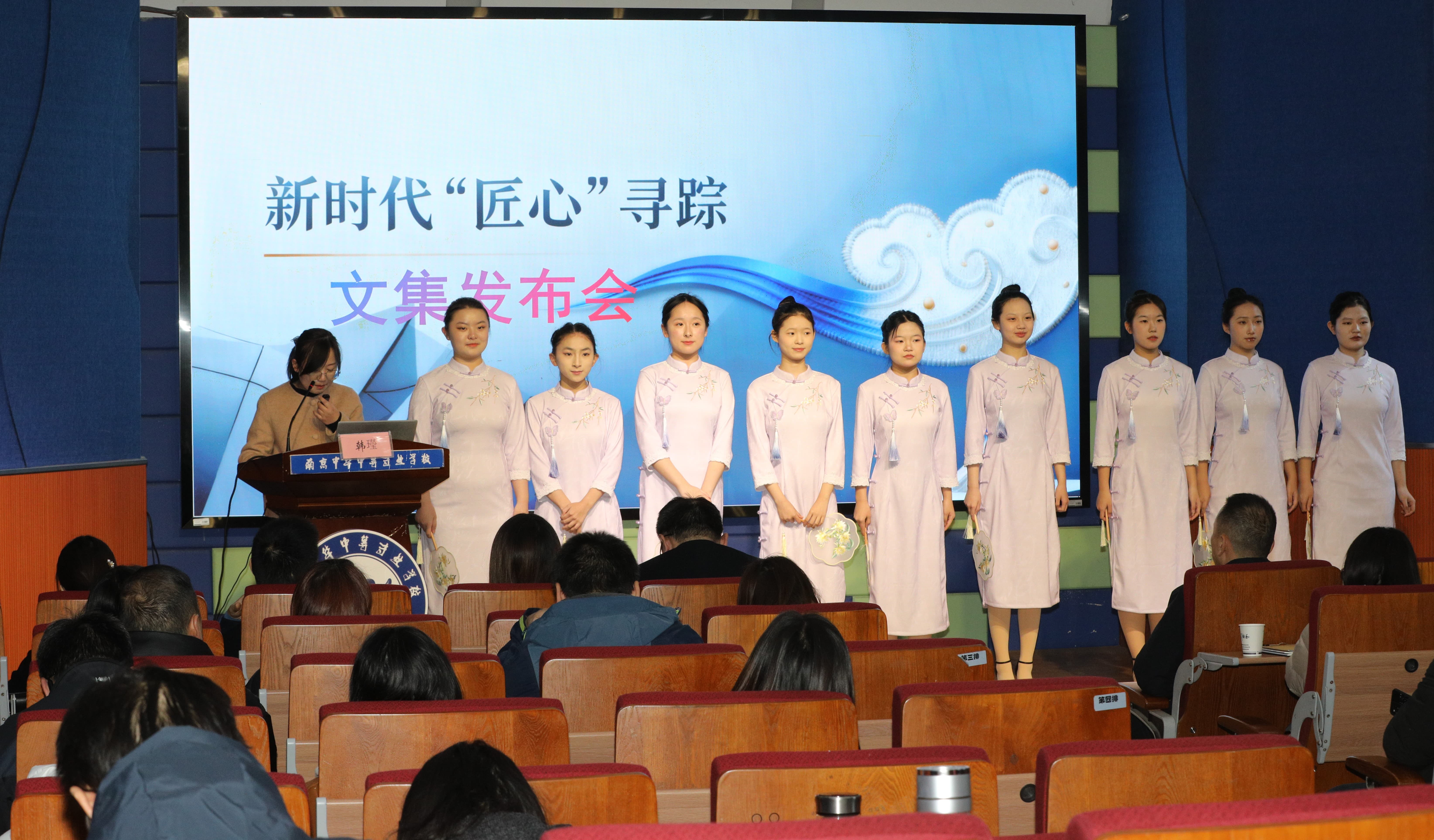 理论指引实践,学生体验是课堂效果的直接见证。服装表演专业2506班学生代表王天雨登台讲述《我的KB故事》,用质朴的语言分享了数字技术陪伴下的个人成长与蜕变,言语间流露出对初心的坚守与对“匠心”的体悟,引发了全场共鸣。紧接着,韩?老师主持了《新时代匠心寻踪》文集班级发布会,这份凝聚师生“匠心”探索成果的文集,成为活动的亮眼印记。