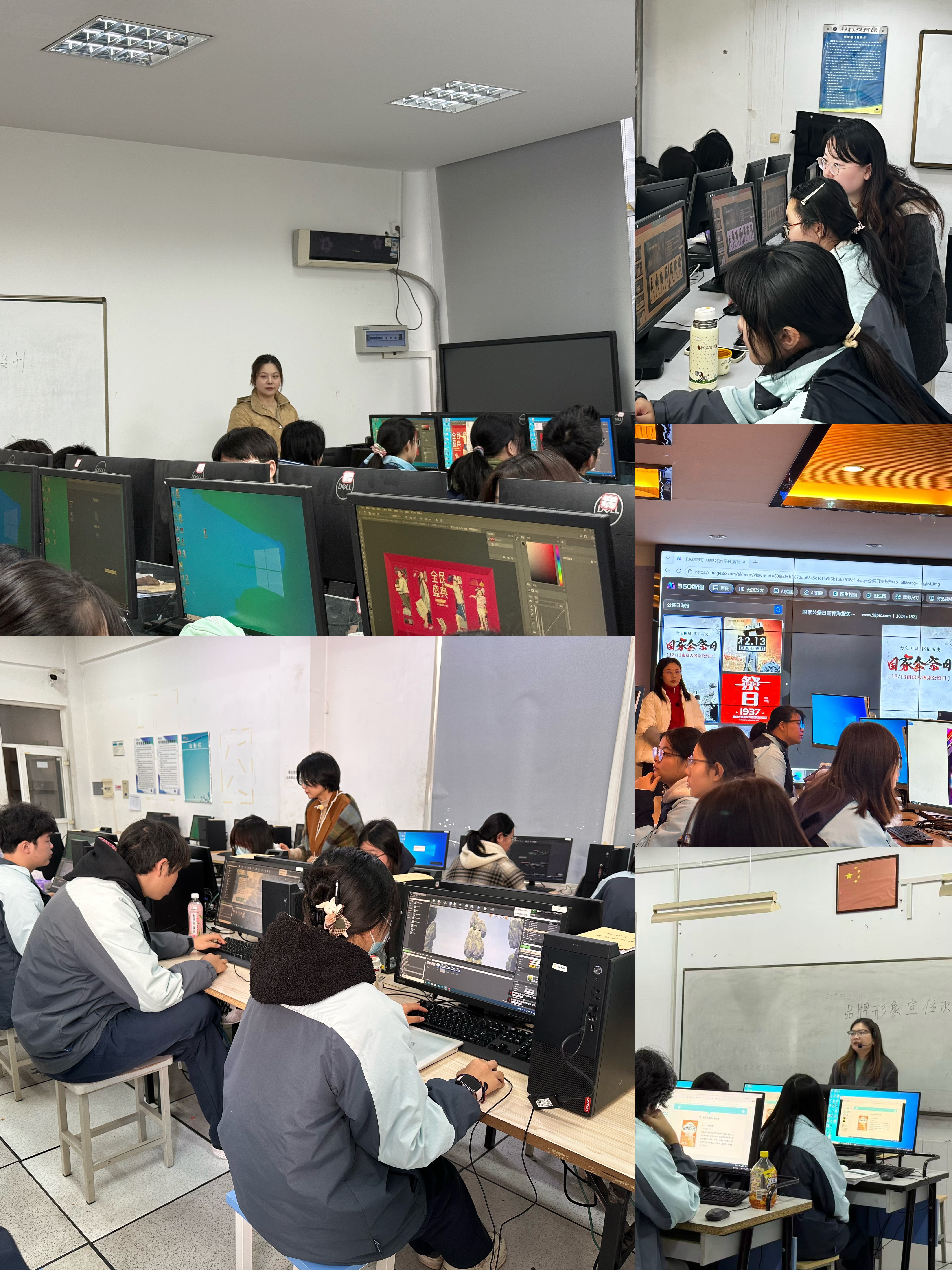 文韵风分会的艺术类课程则兼具创意与温度,施沛老师的《品牌形象宣传识别设计》通过项目教学法,既培养学生创新思维,又强化其严谨态度与团队协作能力;陈旻老师在《游戏UI制作》中巧妙融入中国传统文化元素,让学生在专业技能提升中厚植民族自信心;徐妍杰老师的《创意海报设计》结合技能竞赛标准,在作品打磨过程中践行精益求精的工匠精神;吴芬芬老师的《角色创作》整合教材并贴合数媒专业特点设置任务,采用项目教学法,紧密结合AI技术,助力学生紧跟时代潮流;孙怡梦老师的《主题海报设计》整合教材并结合专业核心需求与知识点,突出数媒专业实践性与创新性,采用项目教学法,融入AIGC项目教学培育学生创意思维;朱颖颖老师的《电商海报制作》实现教材内容与岗位需求精准对接并重构教学内容,采用项目教学法,强化学生实操规范意识与职业素养;曹星月老师的《几何体穿插素描》整合教材并结合课程及数媒专业特色设计任务,采用探究式学习教法,增强学生实操规范意识与职业素养。