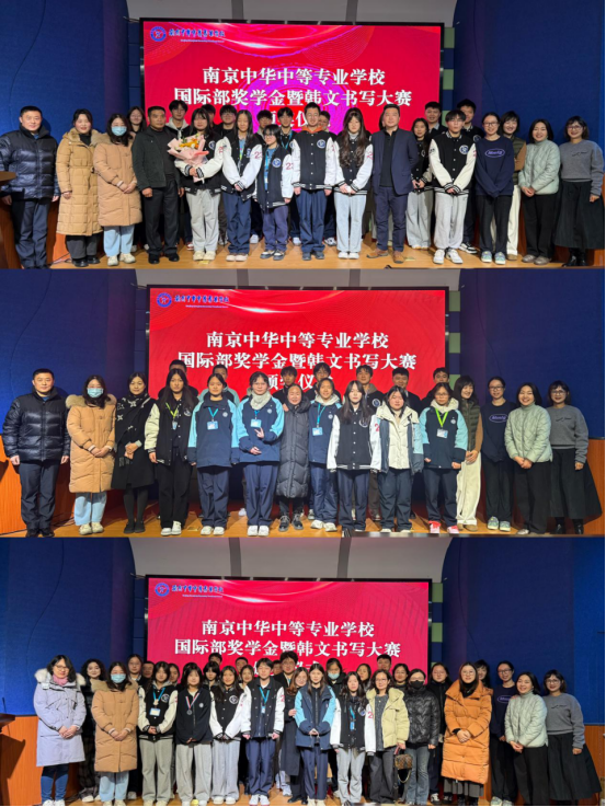 2025年12月22日下午,南京中华中等专业学校国际部奖学金暨第三届韩文书写大赛颁奖仪式在学校全媒体报告厅隆重举行。南京中华中等专业学校副校长曹寅对外合作与实训管理处主任唐鹿韩国大学驻中国事务所主任毕志鹏国际部辅导员、中韩班全体班主任、韩语教师、学生家长代表及中韩班全体同学齐聚一堂,共同见证学子们在韩语学习道路上的成长硕果与荣耀时刻。
